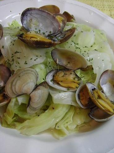 アサリとキャベツをポイ。