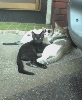 2匹で重なりあって日向ぼっこしてるクロスケとサトコに