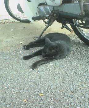 相変わらず配達用バイクの下がお気に入り。