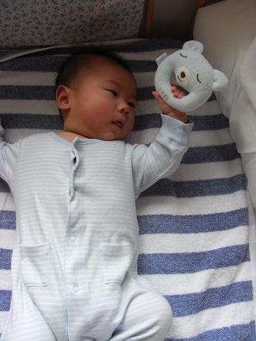 水色のクマのガラガラは唯一の布製だけど