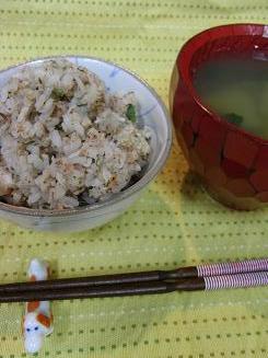 白ゴマ、青じそ、塩をご飯に混ぜました。