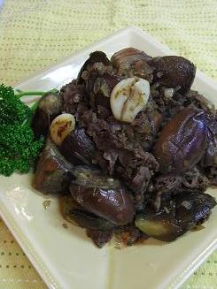 ・ナスと牛肉のにんにく炒め