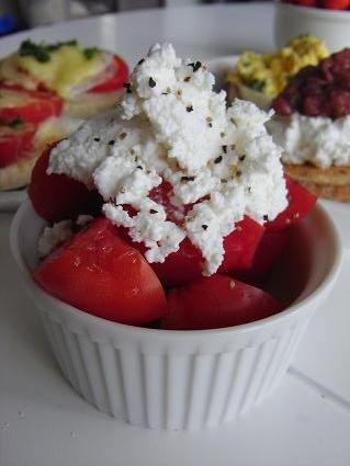 トマトのカッテージチーズのせトマトにカッテージチーズをのせ