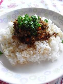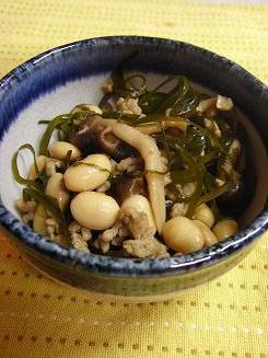切り昆布と挽肉の炒め煮切り昆布、大豆、しめじ、挽肉を
