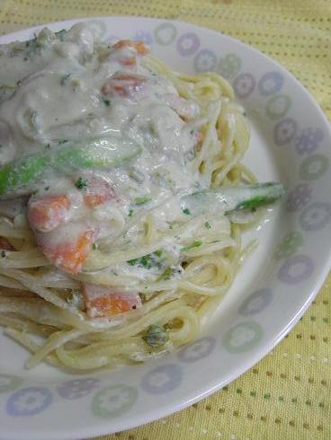 多めに作っておきます。 チーズを加えてゆでたパスタにあえました。